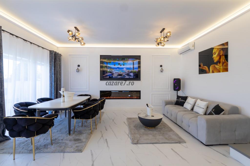 Va punem la dispoziție sistem sonorizare, semineu electric, espressor cafea, frigider, congelator gheață, pahare, frapiere şi tot ce este necesar pentru un eveniment memorabil. De asemenea, exista locuri de parcare pentru mai multe masini, asigurand comoditatea oaspetilor. Aceasta vila moderna din Santana de Mures reprezinta o oportunitate unica de a va bucura de lux, confort si eleganta intr-o zona izolata de agitatia cotidiana.
